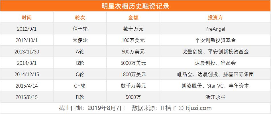 烧钱的玩法需要大量资金的支持,至 2015 年 8 月,明星衣橱共计完成了 7 轮融资,累计交易金额约合 7.26 亿元,估值达到了 16 亿。