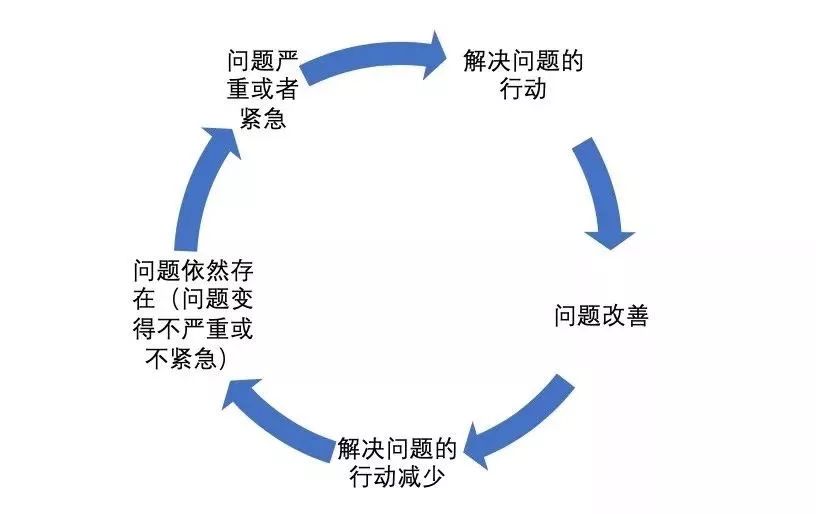 解决问题的最小阻力之路,是让问题从恶化变成改善,然后再由改善回归恶化。这是因为,所有的行动都是由问题驱动的。如果问题因为你采取行动而改善了,你采取进一步行动的动机也就没那么强烈了。