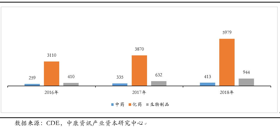 2018年,药审中心受理1类创新药注册申请共264个品种,较2017年增长了21%。其中,受理1类创新药的新药临床试验(IND)申请239个品种,较2017年增长了15%;受理1类创新药的新药上市申请(NDA)25个品种,较2017年增长了150%。