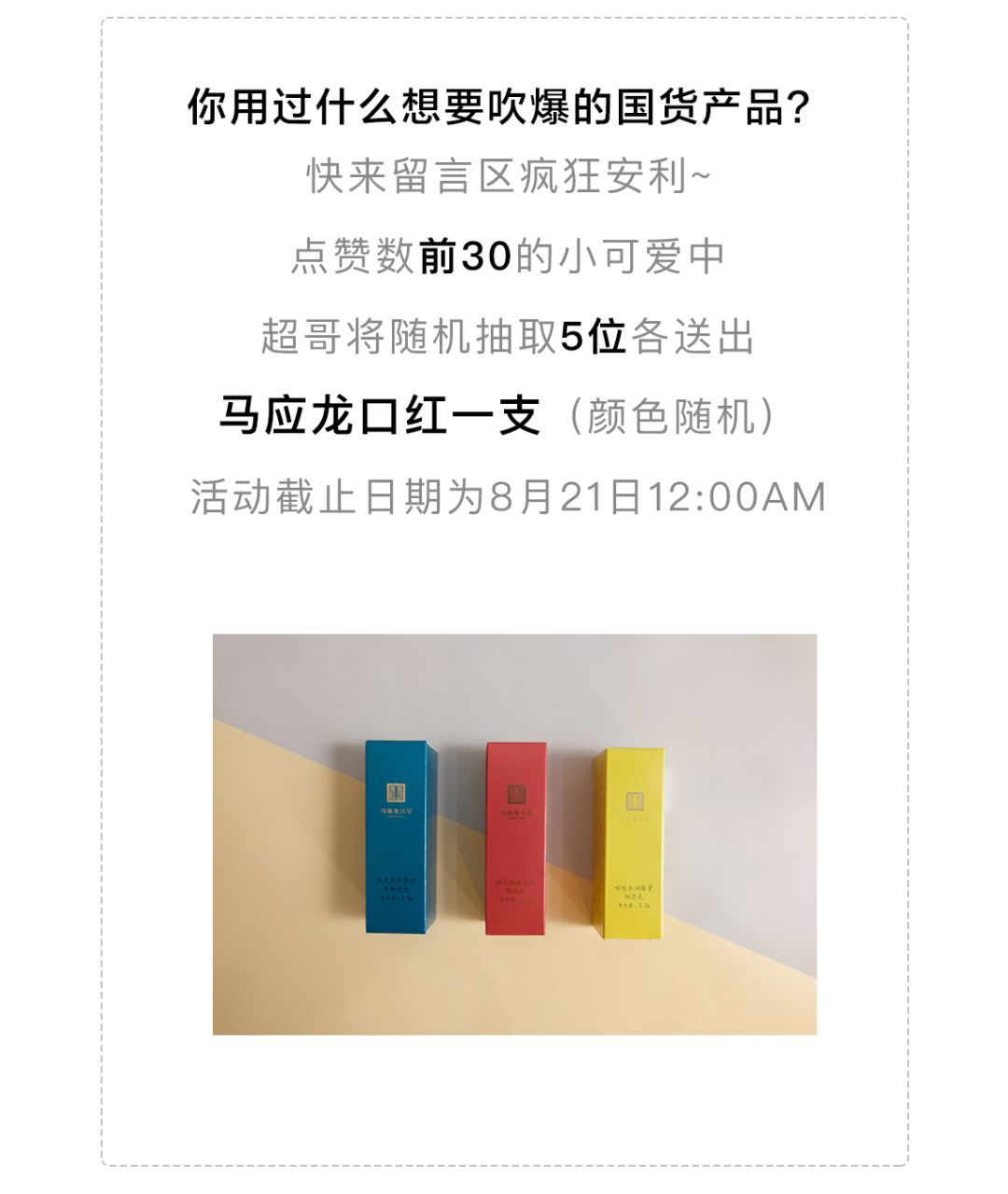 接下来,就到了女生最关心,超哥最恐惧的环节——试色。这一次,马应龙口红分别推出了绛红、香榭丽、初恋色三款颜色。