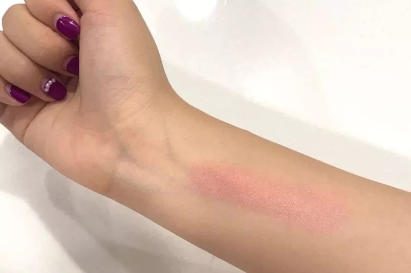 膏体闻起来有点荔枝味,因为添加了保湿成分,质地顺滑,不显唇纹。