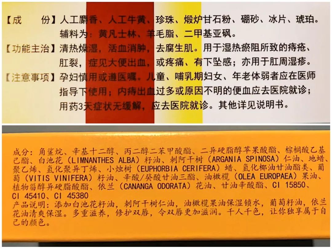 *上:痔疮膏;下:口红*