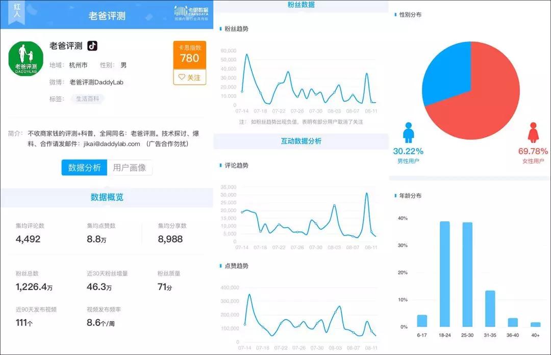 ▲ “老爸评测”抖音号卡思数据详情页(部分)