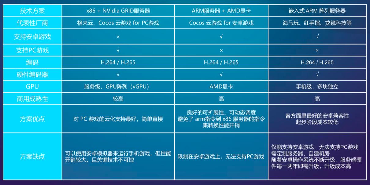 第一种是标准的X86架构+Nvidia GRID服务器,也是今天最主流的模式。支持PC端 3A大作;