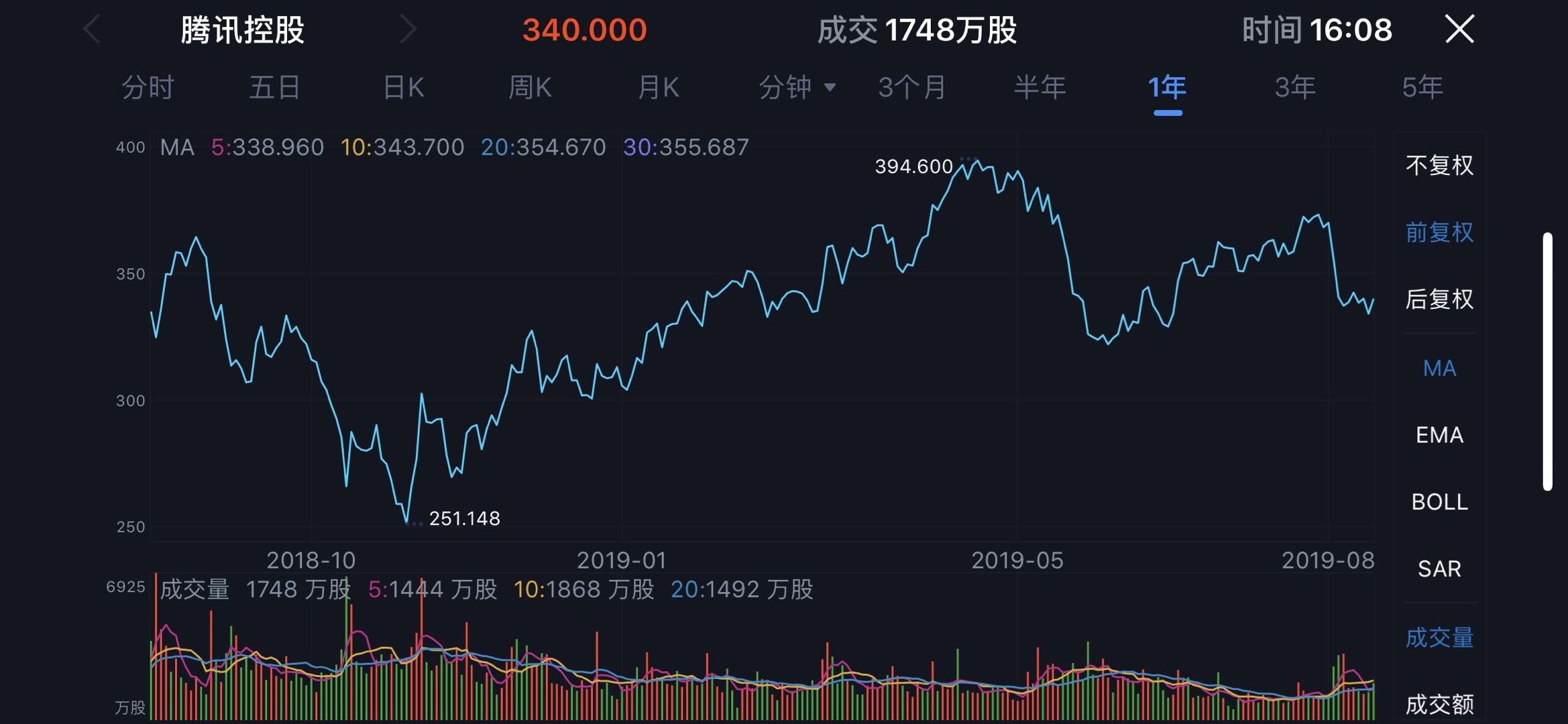 8月14日港股收盘,腾讯(00700.HK)发布2019财年第二季度财报。