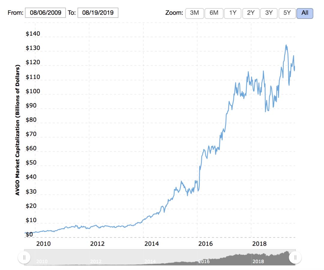 博通(股票代码:AVGO)市值变化 来自macrotrend