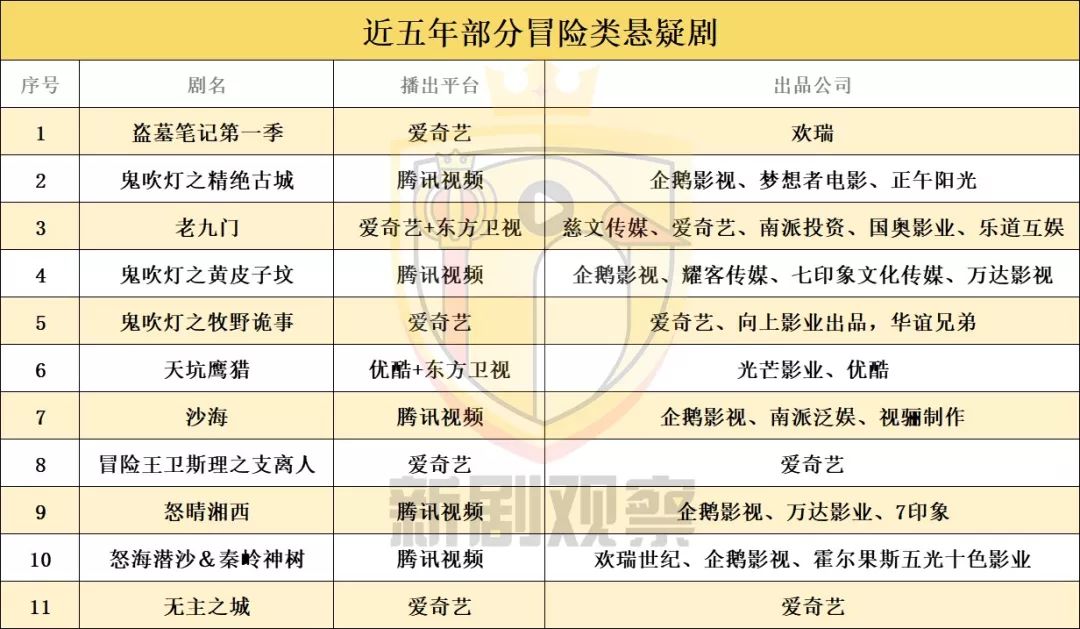 冒险类剧集中,由《鬼吹灯》世界观衍生而来的《摸金符》,由《盗墓笔记》世界观衍生而来的《重启之极海听雷》依然是重点筹备内容。