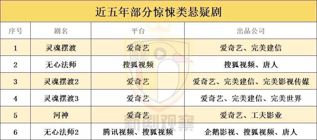 2018年之前,悬疑题材网络剧每年都能保持2——3部的爆款产出比例,诸如2014年的《灵魂摆渡》《暗黑者》,2015年的《盗墓笔记》《心理罪》《无心法师》,2016年的《法医秦明》《余罪》,2017年的《白夜追凶》《无证之罪》《河神》,均在口碑或市场关注度上取得不俗反响。