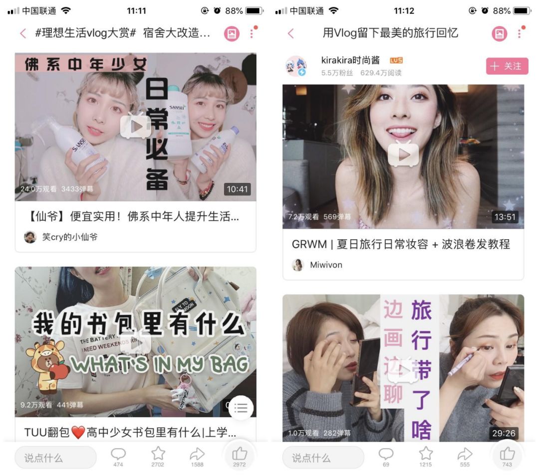 B站的“Vlog星制造”帮助推广达人的优质内容,让达人获得了关注与成就感,进而激发达人创造更多精品内容。