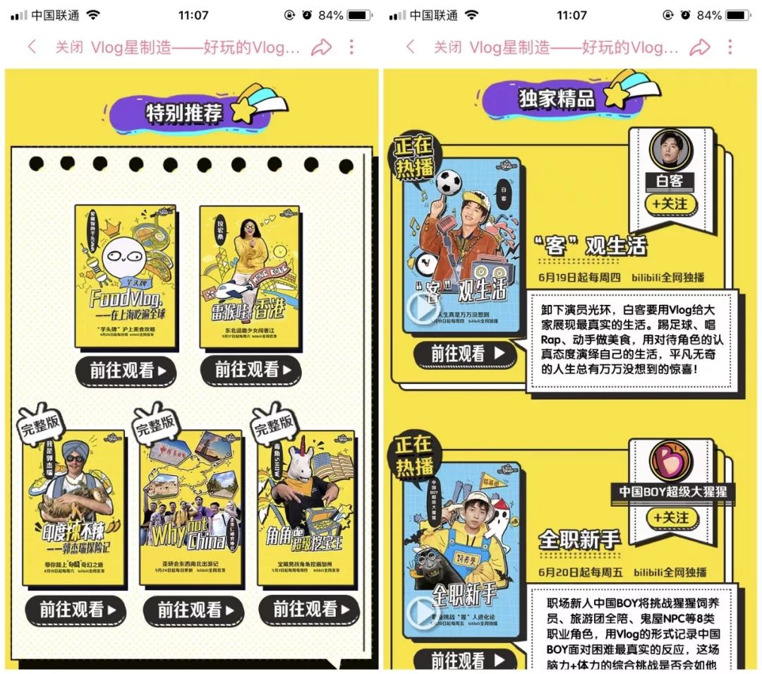 B站联合多位Vlog达人推出了“Vlog星制造”栏目,共同打造系列化的Vlog精品内容,让用户养成定期观看的行为,稳定用户的忠诚度。