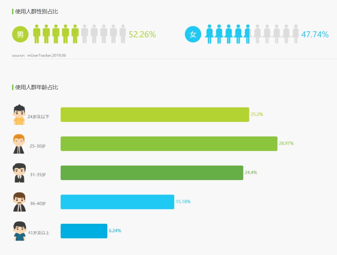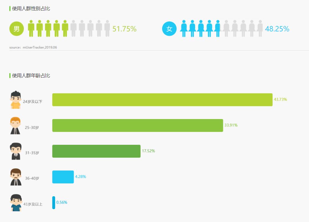 根据艾瑞 App 指数的数据,抖音的主要用户是来自一二线城市的90后年轻人,使用人群性别上差异不大,男生占比52.26%,女生占比47.74%。