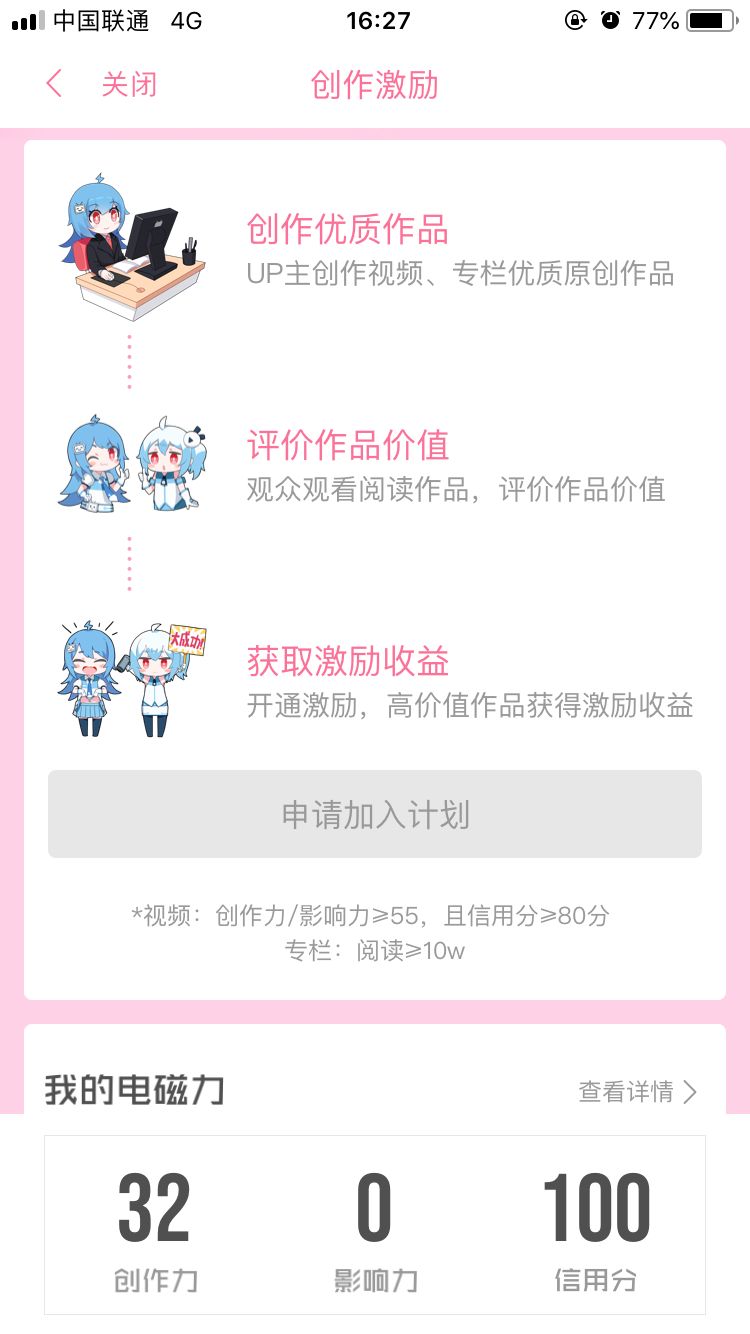 除此之外当视频创作分/影响力≥55,且信用分≥80分就可以开通“创作激励计划”,创作激励计划会根据UP主视频的播放量和互动量,给予一定补贴,根据B站UP主“霸气小猪Nong”的分享,每一万播放量差不多可以拿到30元的补贴。