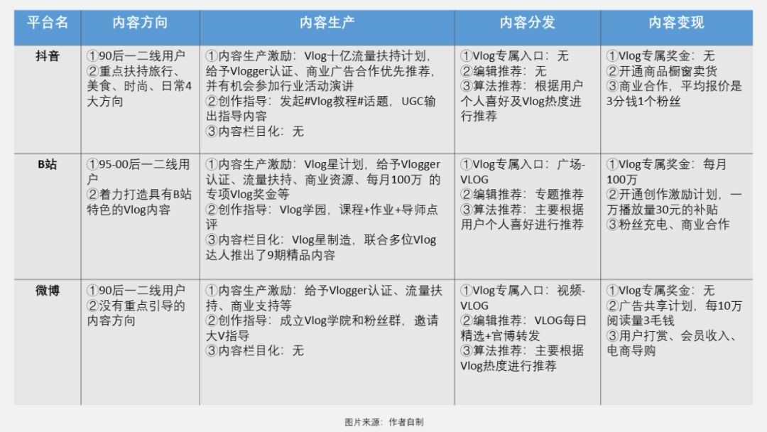 为了吸引越来越多的人拍摄Vlog,提升Vlog的内容质量,以及给Vlogger带来收入,抖音、B站、微博三大平台做了以下努力:
