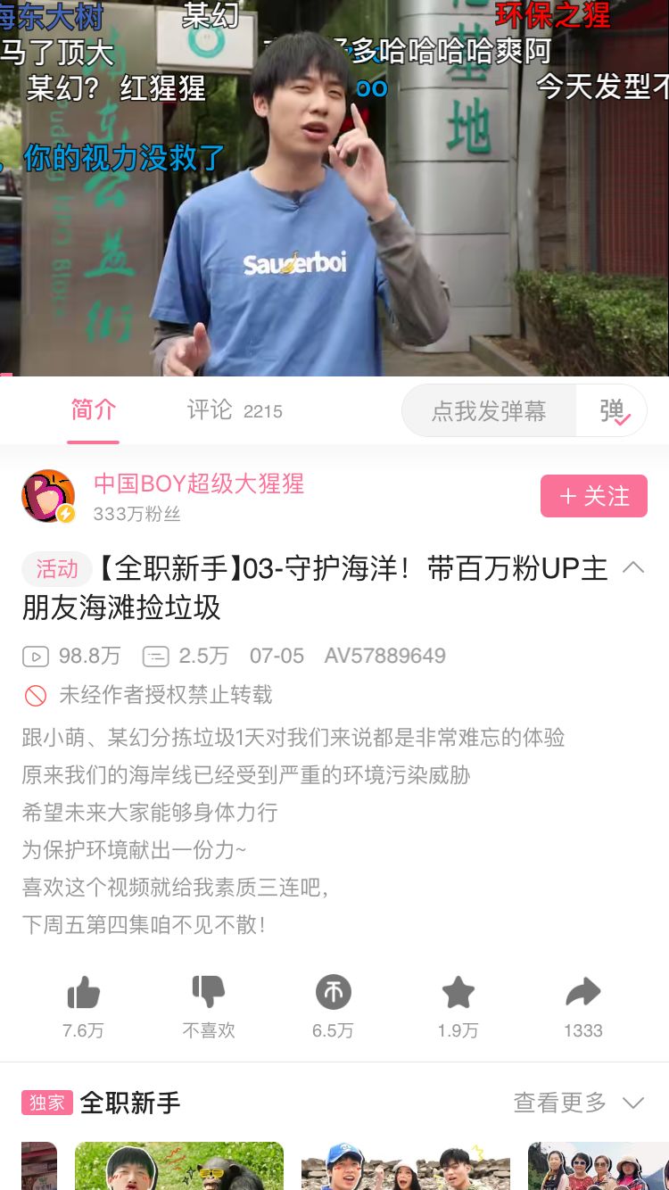 例如“中国boy超级大猩猩”的“带百万粉丝UP主海滩捡垃圾”,估计其他平台很难看到这么带感的Vlog。
