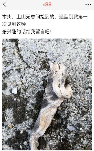 emm这木头看起来是挺别致,但售价88 ….让我立刻感到了这位大姐,真的很喜欢这根木头,君子不夺人所爱,所以我立刻冷静了下来,嗯。