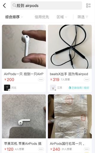 抱着试一试的心态,我在闲鱼搜索了“捡到 airpods”: