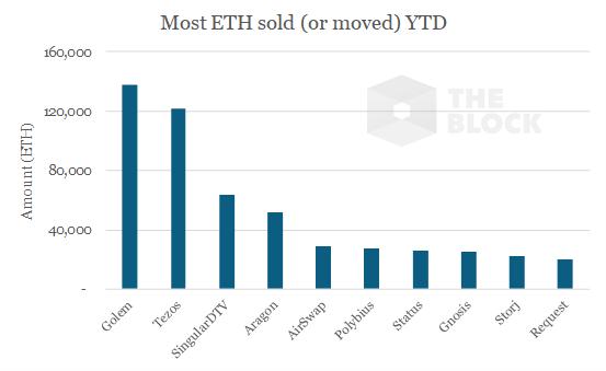 根据 The Block 研究,在过去一年中,通过 ICO 募资的项目方所持 ETH 数量一直在稳步下降。