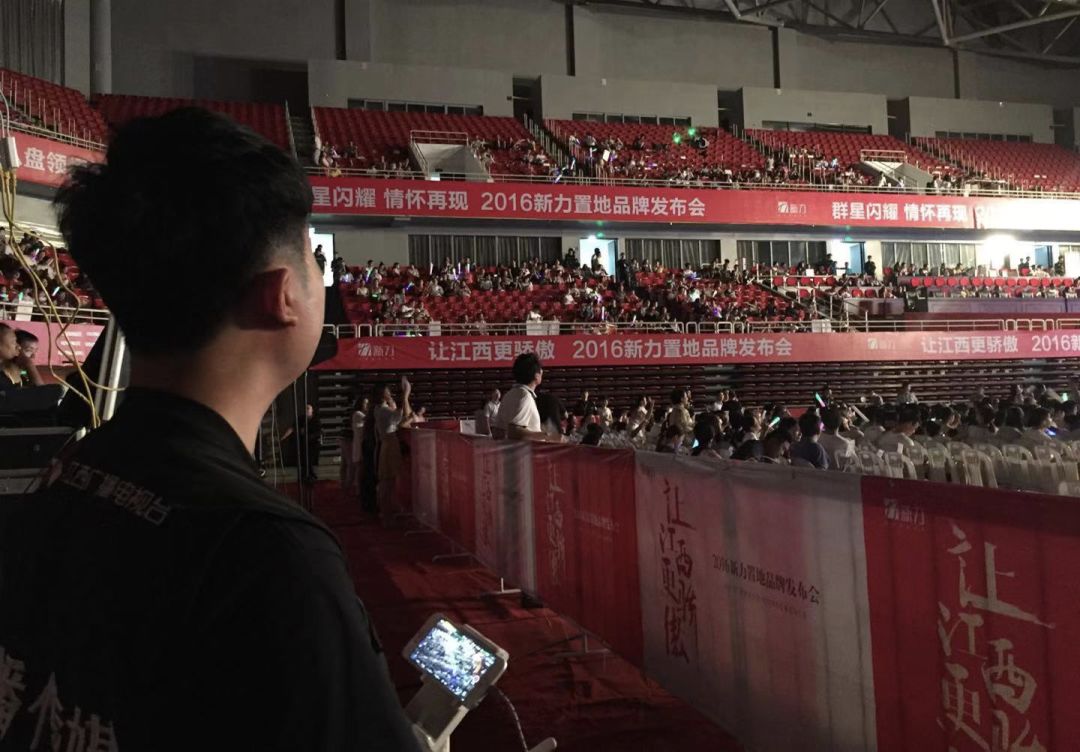 2016年8月19日,陆凌岳公司承接了齐秦、温岚在江西的一场室内演唱会无人机拍摄。“演唱会是在一座室内体育馆,没有GPS信号,也没有充足光线,所有的定位方式都没有办法使用。最后我们只能通过姿态模式进行手动飞行,并且在钢架结构内,无人机的磁力计也受到很大的干扰,操作上更是难上加难。”