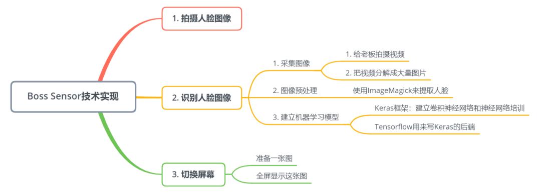 怎么办呢?一位日本程序员决定编写一个程序,一劳永逸。思路如下:首先要让电脑完成对老板面部的深度学习,用摄像头自动识别在工位通道走过的人脸,如果确认是老板的话,就用一张写满了代码的截图覆盖到整个屏幕上,以表示我在认真工作。