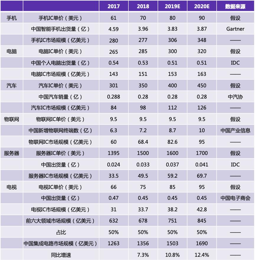 三、中国芯的千亿美元市场规模:汽车电子、物联网、服务器成拉动产业需求的主力
