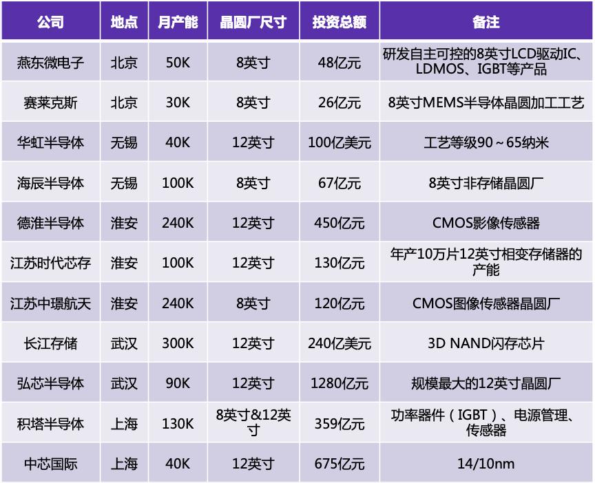 制造企业虽然只有9家,但投融资总额达到231亿元,这说明晶圆代工厂是重资本企业,根据业界经验,一条8英寸生产线需要50亿人民币左右,一条12 英寸生产线需要80亿元的投资,除此之外,每年的运行保养、设备更新与新技术开发等成本占总投资的20%。