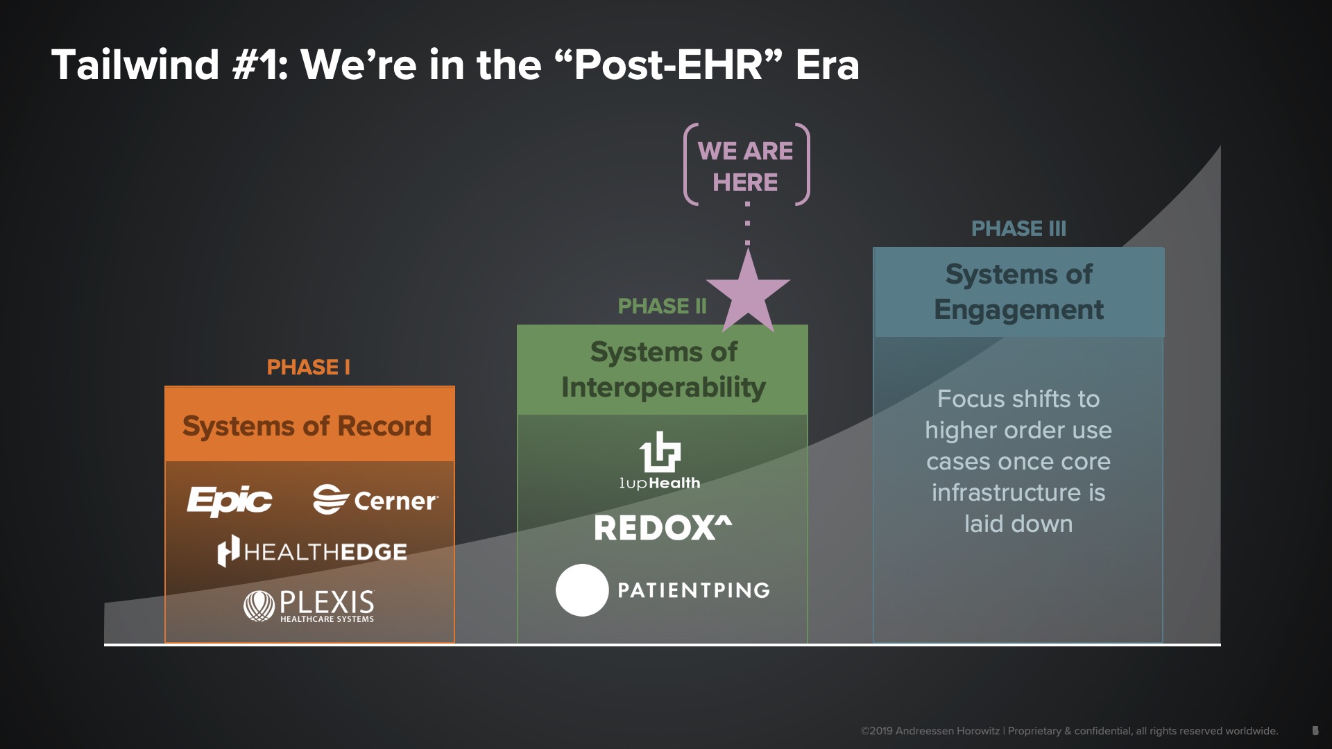 我所指的,是电子健康记录在供应商市场的运用,以及交付方面的许多核心系统,正在创建非常擅长存储数据的记录系统。