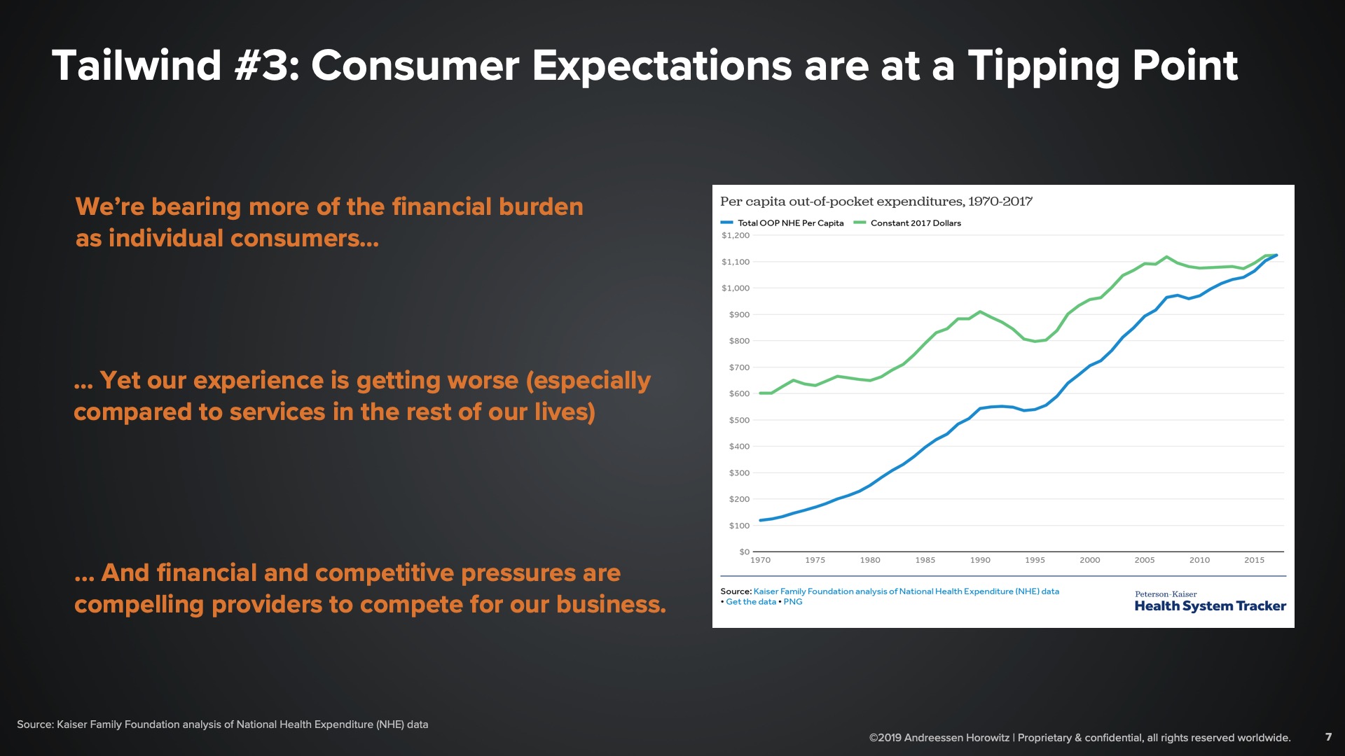 与此同时,消费者也在将我们在医疗保健方面的体验与我们其余生活(零售业、旅游业、交通运输业)的体验进行比较,而这些体验在过去几年中得到了神奇的改善。