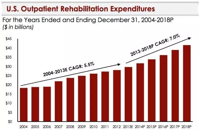 根据美国投资银行Harris Williams分析,物理治疗产业正以7%的年增长率不断扩张,在2019年将达到近500亿美元的规模。
