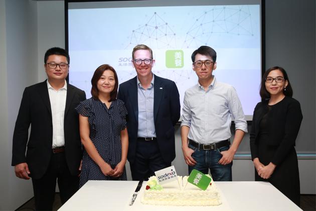 索迪斯中国区总裁马博闻(左三)、美餐联合创始人兼首席执行官赵骁(右二)