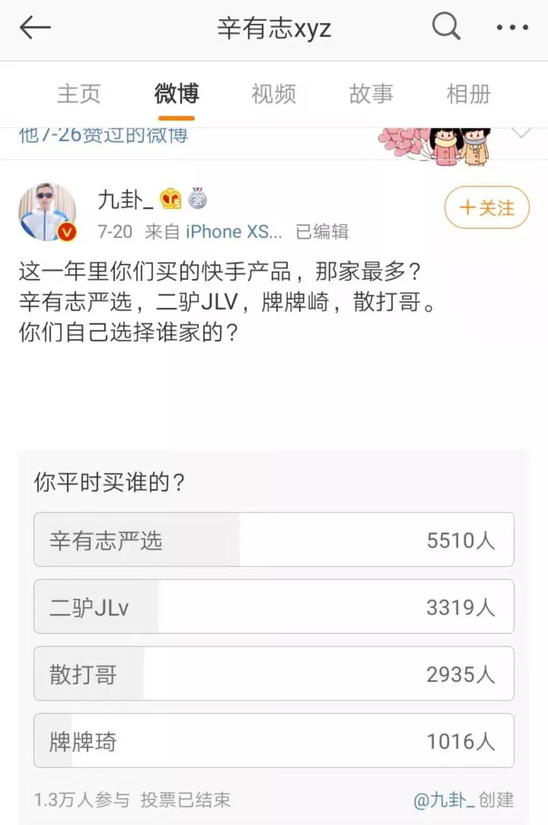 必须承认,快手的电商带货能力确实强悍,辛有志就是最好的例子,在一声声的“老铁”、“家人”中,动辄上亿的成交额让人咋舌。他创立的“辛有志严选”在微博投票“选择哪家快手产品”中当选第一,力压二驴、散打哥和牌牌琦等其他大主播。