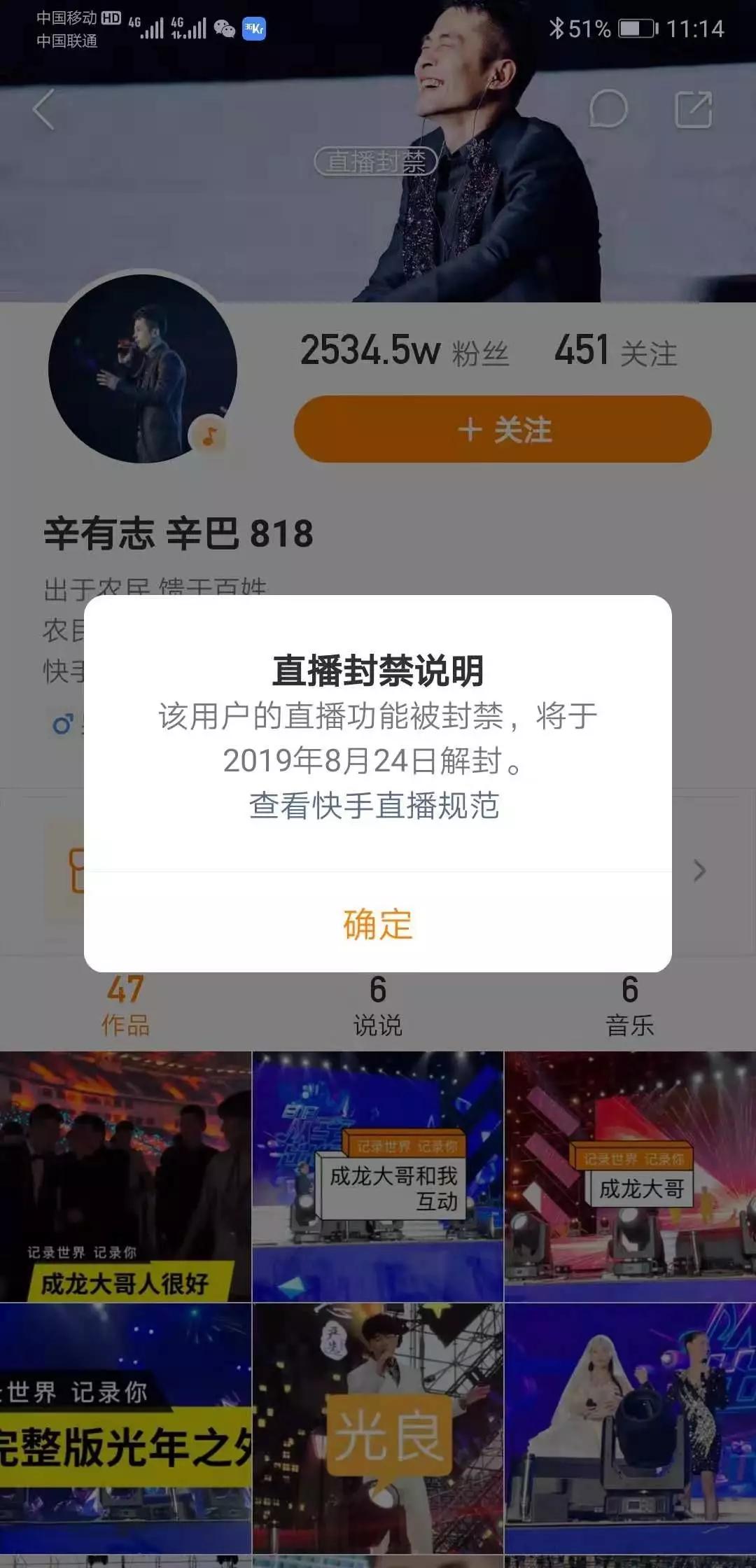 现在,你如果打开快手,搜索“辛有志 辛巴 818”,会发现这个拥有超过2500万粉丝的主播账号页面显示“直播功能被封禁”。