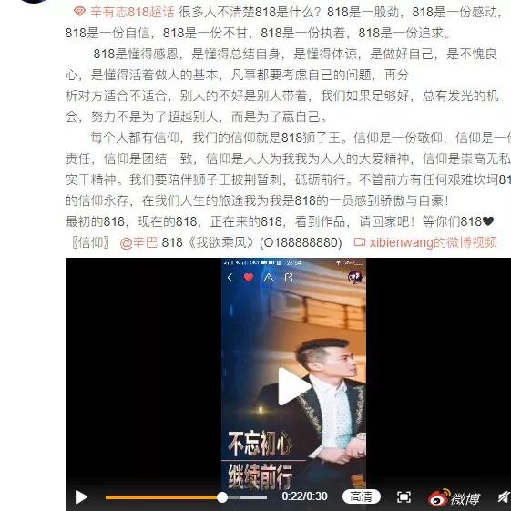 对粉丝而言,辛有志是818的精神领袖和信仰;
