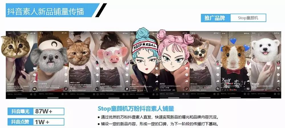 在童颜机的推广案例中,品牌方将自己已经制作好的十几个短视频模板,随机分发给500个KOC,每个KOC配上自己的创意文案带话题进行转发传播。借助抖音的推荐机制,在三天时间内,逸人投放的KOC在抖音上拥有87万曝光,1万多点赞。