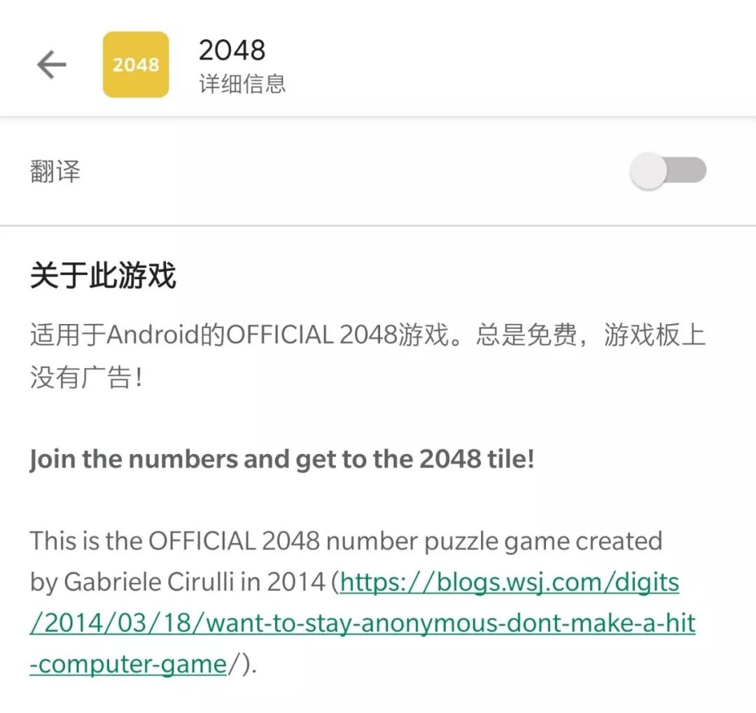 最终他花了一个月的时间制作了游戏的iOS和安卓版,还在简介中特意标注了“官方版2048”。