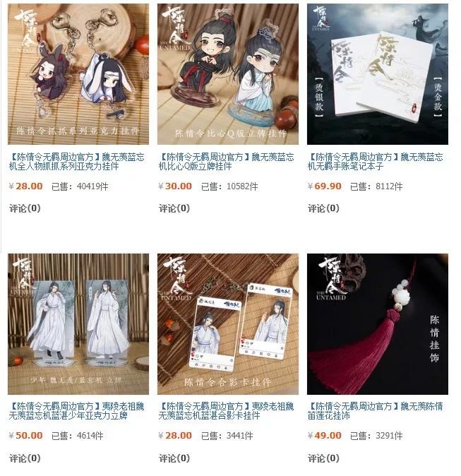 目前,《陈情令》的OST专辑在QQ音乐销售额已突破1500万;官方淘宝店铺已有6样商品销量破3000,其中销量最高的商品已超4万;最后六集会员付费点播,也以一天之内超250万人解锁,预计收入突破7500万元,开创了国内会员付费新模式。