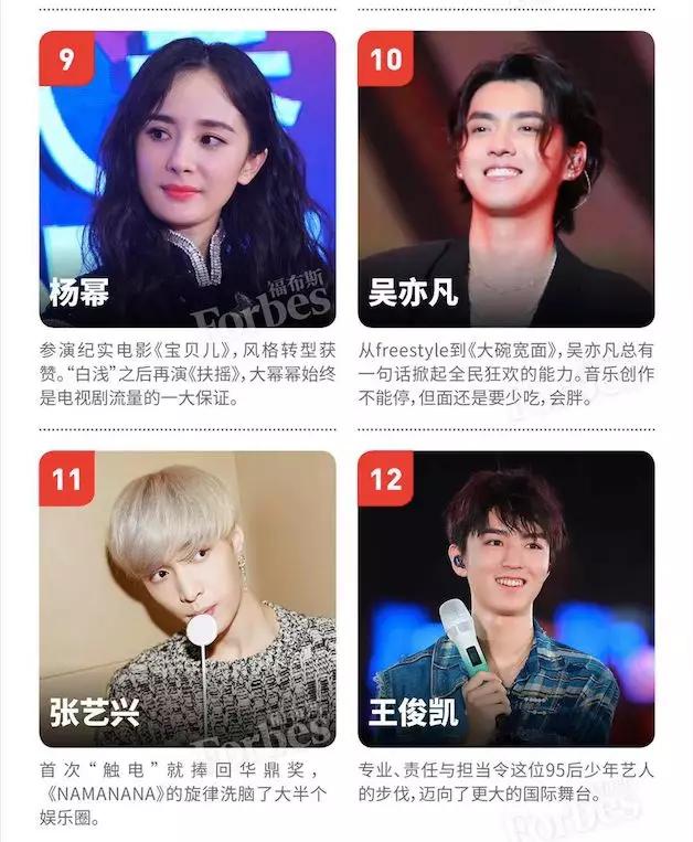 编者按:本文来自微信公众号“每经影视”(ID:meijingyingshi),记者|杜蔚 编辑|杜毅 王嘉琦 ,36氪经授权发布。原题目《为何TFBOYS、杨超越、蔡徐坤能入选“中国名人榜”,福布斯这么说…》