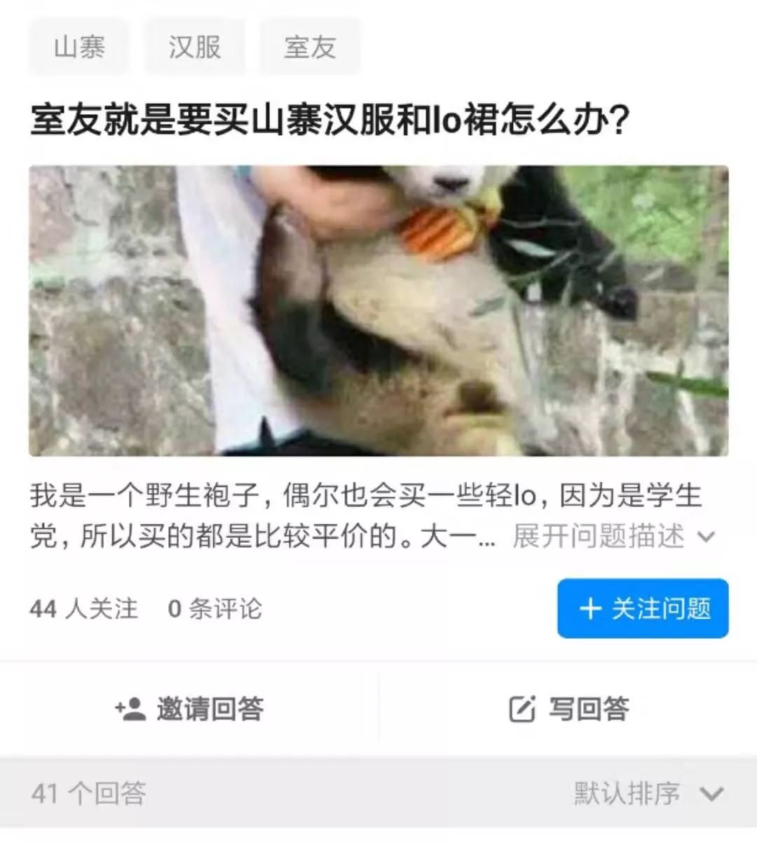比如,穿Lo裙不配小lo鞋要被嘲,汉服复原派看不起仙服、汉元素。还有萌新买山,穿了盗版要被嘲是「穿山甲」,不仅如此,还很有可能被挂上各种树洞、Bot等微博吐槽号。