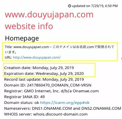 公开信息显示douyujapan.com的域名已经被注册,注册日期在7月29日,但是目前尚不支持访问。