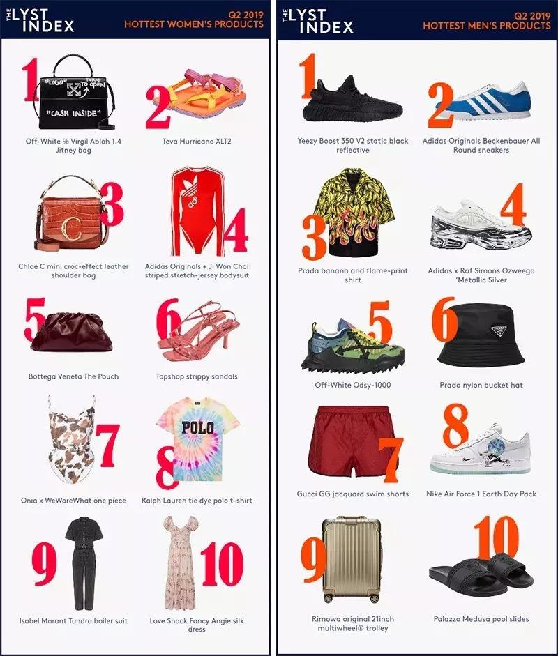 根据Lyst发布的第二季度潮流榜单,服饰类单品仅占男女装最热单品的三分之一,配饰类占据半壁江山
