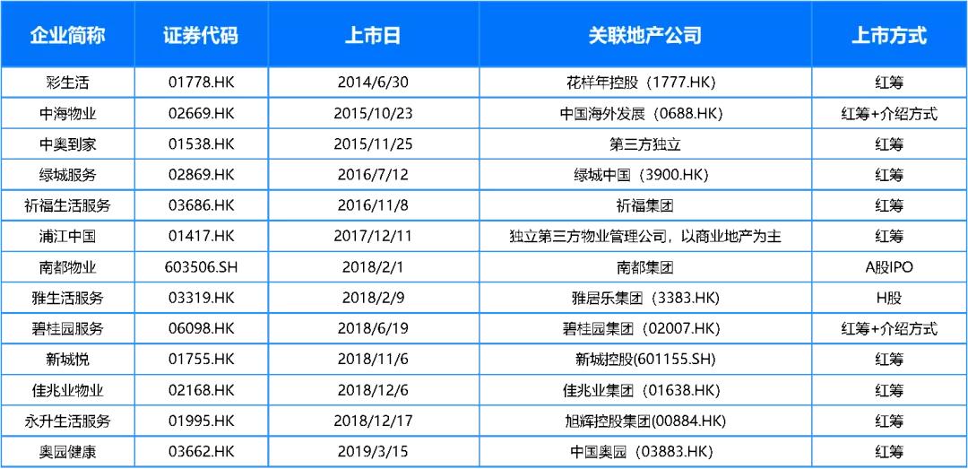 表:物管企业上市一览表