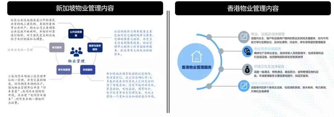 不论是中国香港还是新加坡,物业管理的初心都是为了房屋/建筑的保值、升值,港新的物业管理行业的核心更偏向于设施管理行业(港新的物业管理行业都是以“设施管理(Facility Management)”的概念为核心,即如何让建筑物、土地等设置用途产生预期的使用效益)。