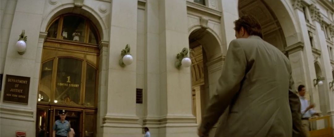 阳光都被高楼遮挡,明明是白天,街道上却阴沉沉。还可以看到远处有吊塔,正在建造更多摩天大楼。《这个杀手不太冷》拍摄于 1994 年,推算一下,当年新建的可能是弗利广场联邦法院。