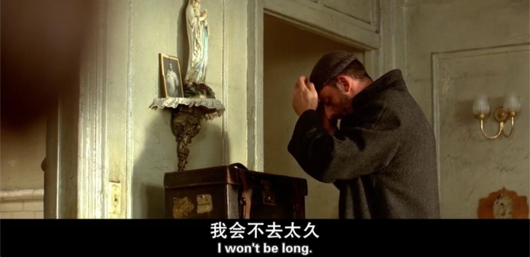 以前莱昂房间内不会出现圣母塑像,但在和玛蒂达四处搬家后,影片中最后一个出现的旅店中,有了。在出门暗杀前,莱昂看了一眼圣母。