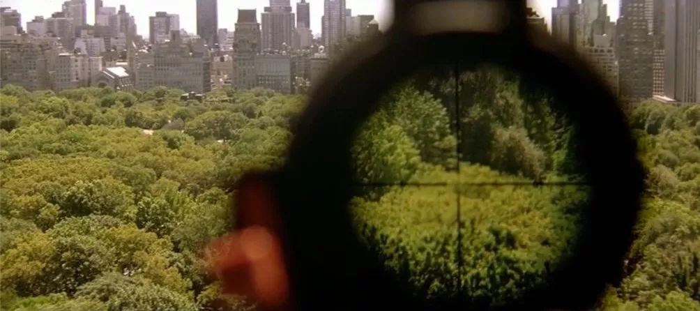 莱昂带着玛蒂达在大楼天台上练习狙击。我们得以站在高处俯瞰纽约中央公园,平视旁边组成天际线的大楼。