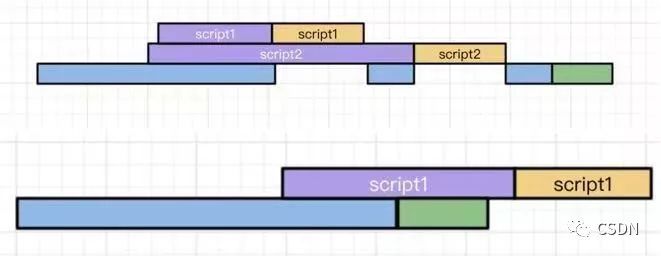 它们的执行时期与文件距离用户的服务器距离或文件大小有关,因此下面两种情况都可能发生。如果设置async的script标签越多,产生的情况就越多,无法预估。
