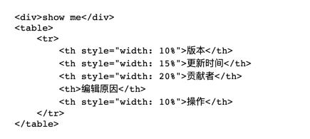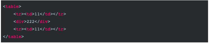 table 模板的标签是具有很强的排他性,只能在 td 与 th 加东西标签与文本,在 tr 或 tbody 之间加东西,它们会漏到外面去。