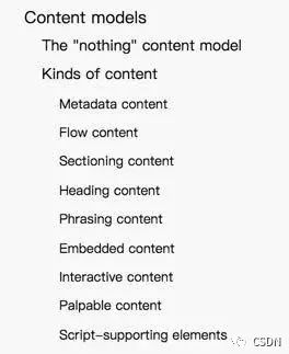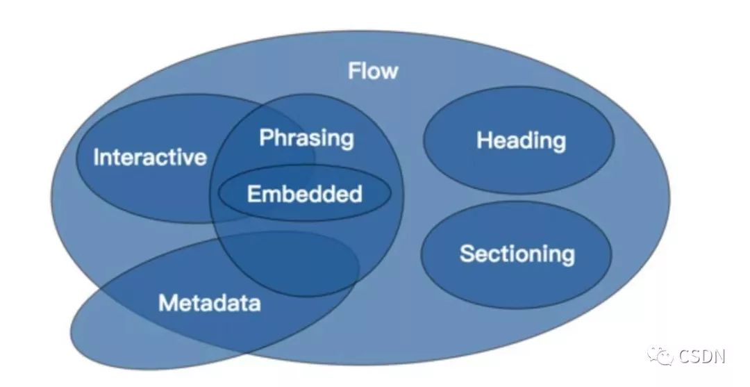 我稍微归纳一下,当然在 W3C 的 HTML5.2 中它们也有另一套划分。那套划分很奇怪,某一种标签可能归类到多个类别中。