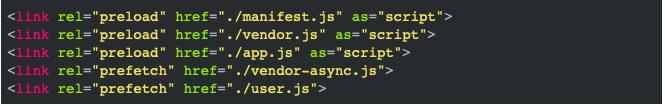 对当前页面的要用到资源优化加载,并且不阻塞渲染和 document 的 onload 事件。使用了rel='preload'的 link 标签还可以指定 onload 事件,方便你进行后继处理。