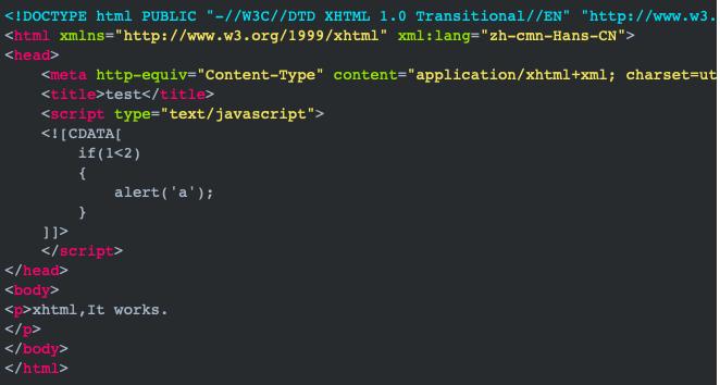 下面这段 XHTML 标准模式代码,符合 W3C XHTML 语法,能够执行(保存为 itworks.xhtml 文件,用 Firefox 打开):