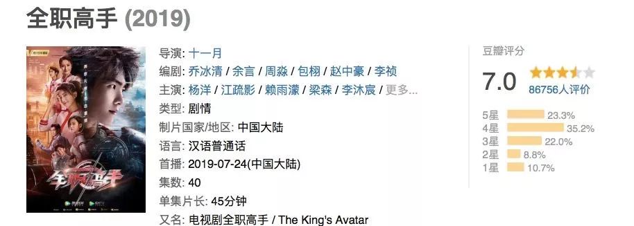 两部爆款剧收官后,暑期档的下半场混战中,撞款《亲爱的,热爱的》同为电竞热血故事的《全职高手》失去先发优势,而聚焦家庭教育的《小欢喜》掀起热议,颇具全民爆款潜质,但仍未达到去年暑期的《延禧攻略》的高度。